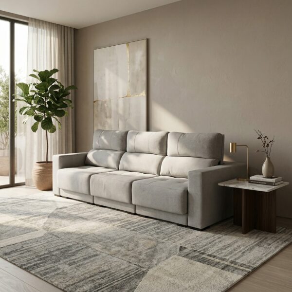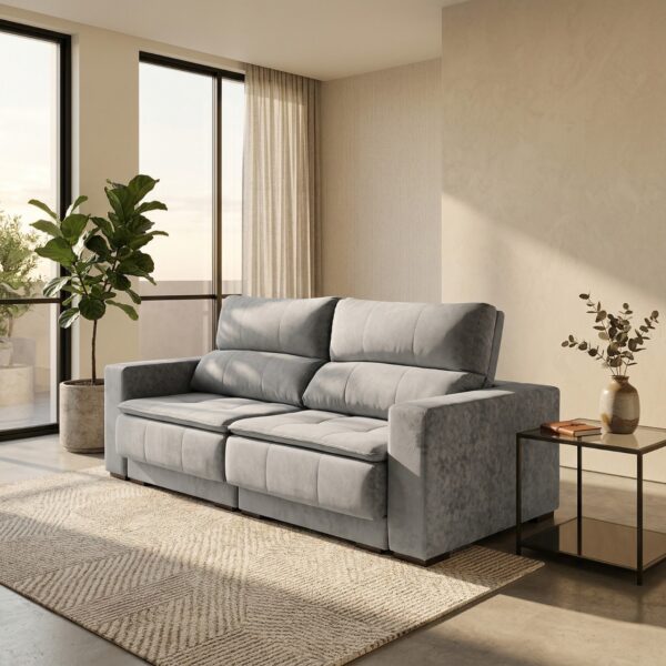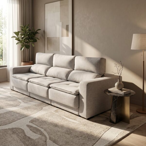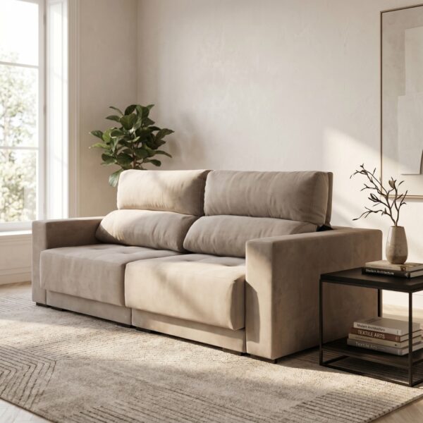 Sofa Retrátil Vancouver 2,00 X 1,10 Assentos Em Molas Braços Camelo 15Cm Tecido 897