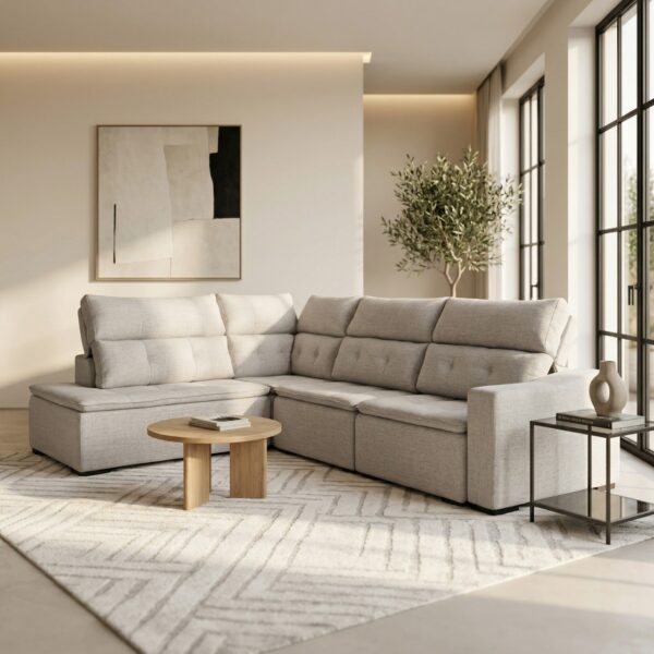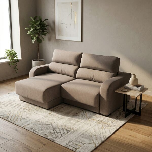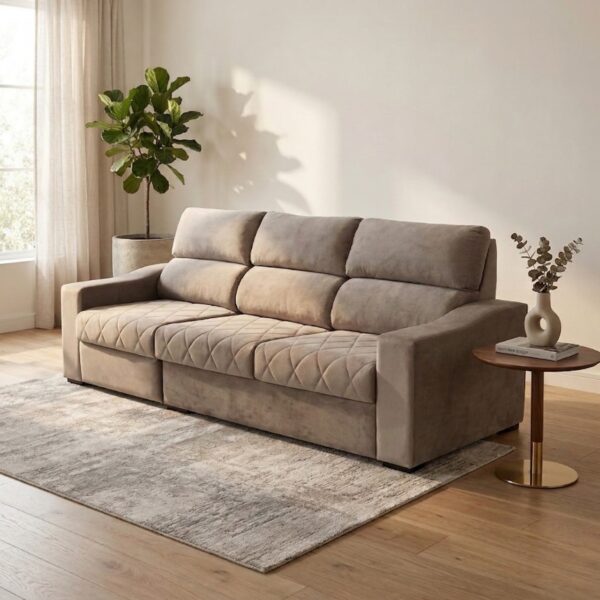 Sofa Retrátil Vancouver 2,00 X 1,10 Assentos Em Molas Braços Camelo 15Cm Tecido 897