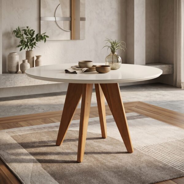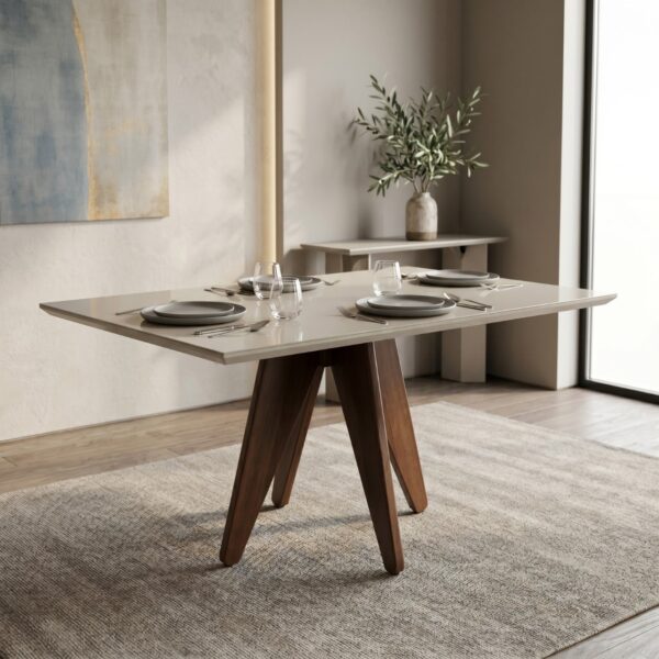 Mesa De Jantar Maranello 1,36M Amendoa Vidro Off White
