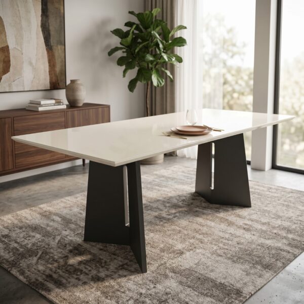 Mesa Xangai 2,00 X 1,00 Amendoa Vidro Off White