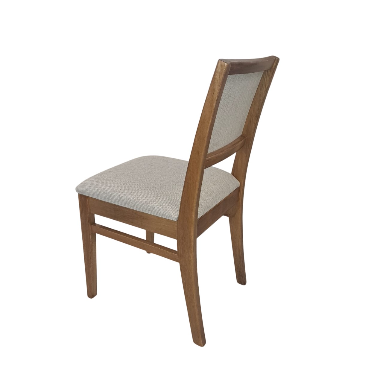 • Conforto do Assento: O encosto em tecido geralmente oferece um nível adicional de conforto em comparação com cadeiras com encosto apenas de madeira.