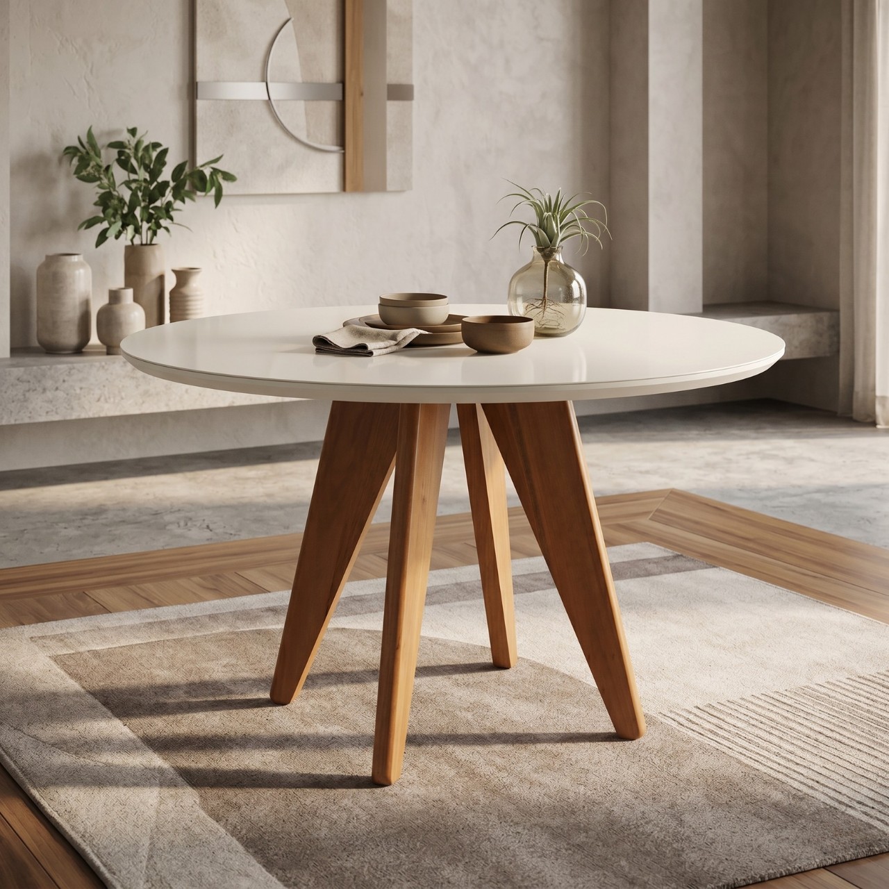 A Mesa de Jantar Maranello com 1,20 metros de diâmetro é uma peça de mobiliário encantadora e moderna, perfeita para a sua sala de jantar. O seu design provavelmente apresenta um tampo circular suportado por uma base cônica, o que confere um visual elegante e contemporâneo ao ambiente.