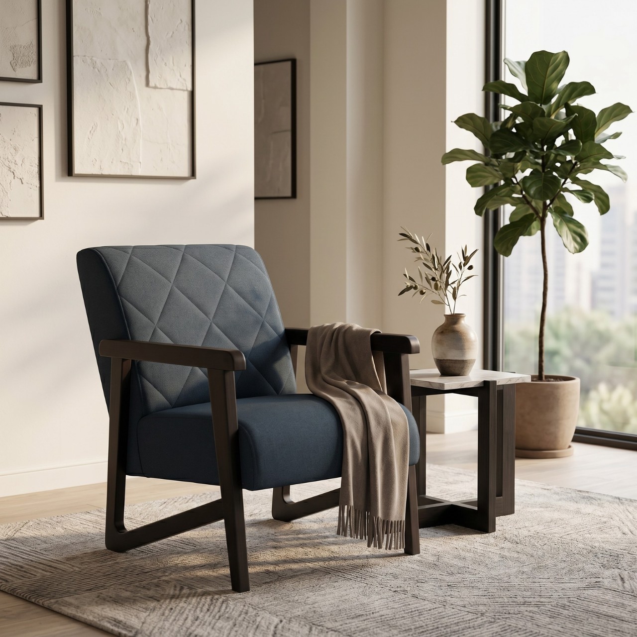 Os braços de madeira são um dos destaques desta poltrona. Eles adicionam um toque de calor e natureza ao design, contrastando de forma elegante com o estofamento. A madeira utilizada geralmente é de alta qualidade, o que não apenas confere um visual atraente, mas também garante a durabilidade da peça