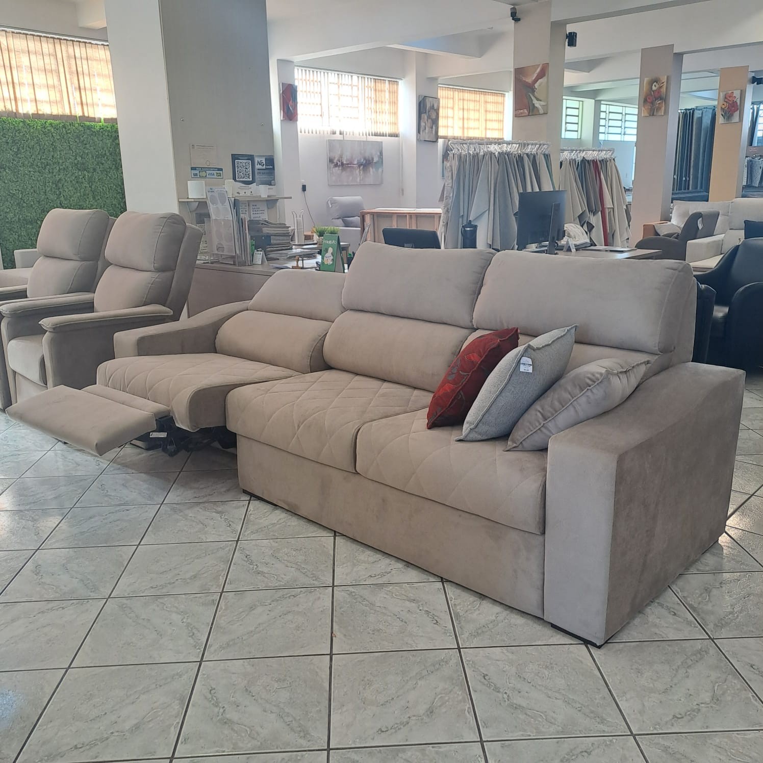 Sofá Relax 2,65 X 92 Assentos Em Molas C/01 Reclinável Tecido 241