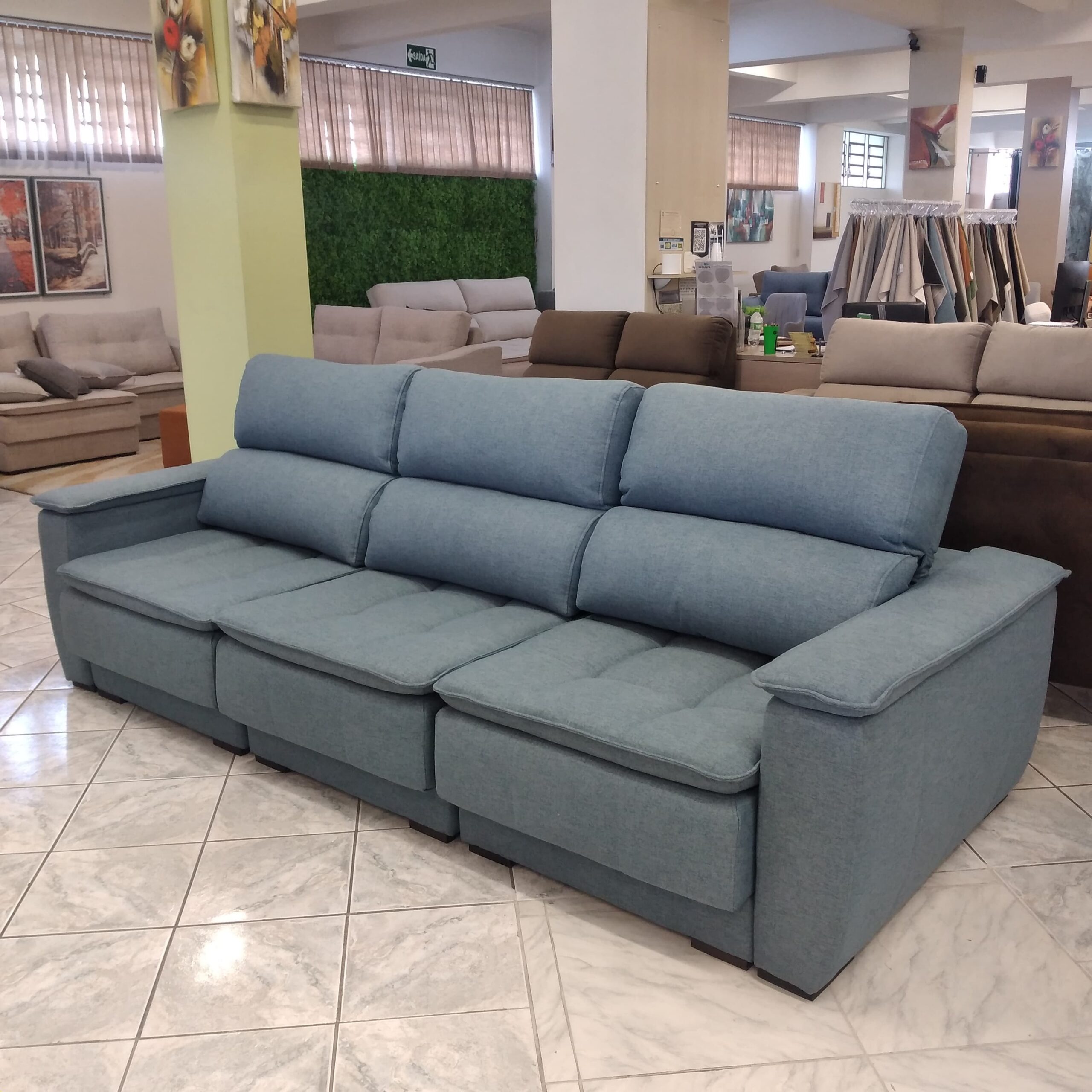 Sofa Retratil Madrid 2,85 X 1,10 Assentos Em Molas Braços 20Cm Tecido 896